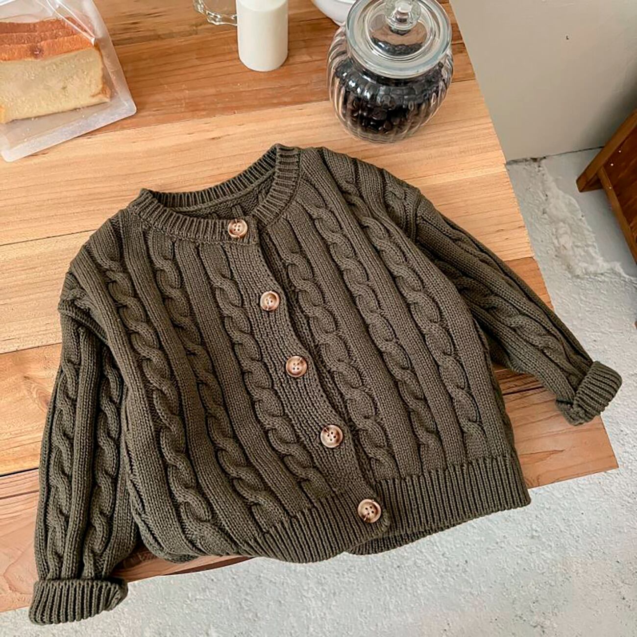 ケーブルニットが可愛いカーディガン。